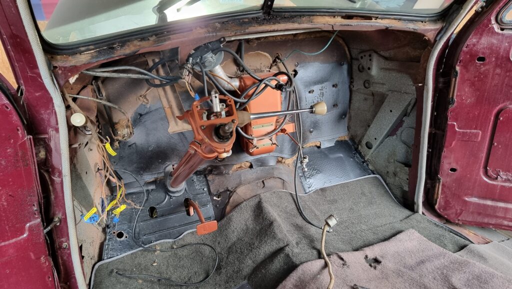 Um den Unterboden zu retten, musste schließlich alles raus .. das aus für einiger Teile der Innenausstattung. Der Teppichboden war leider nichte mehr zu retten 🙁